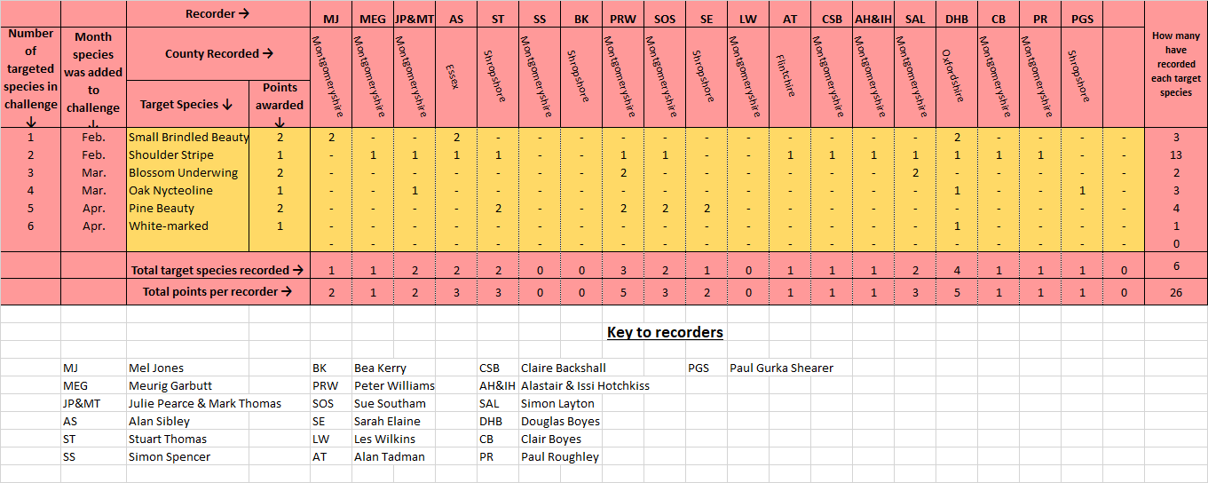 Just a reminder of the target species to look out for (below) and please remember you can join in with this challenge when ever you like, just let me know here, what you've recorded.